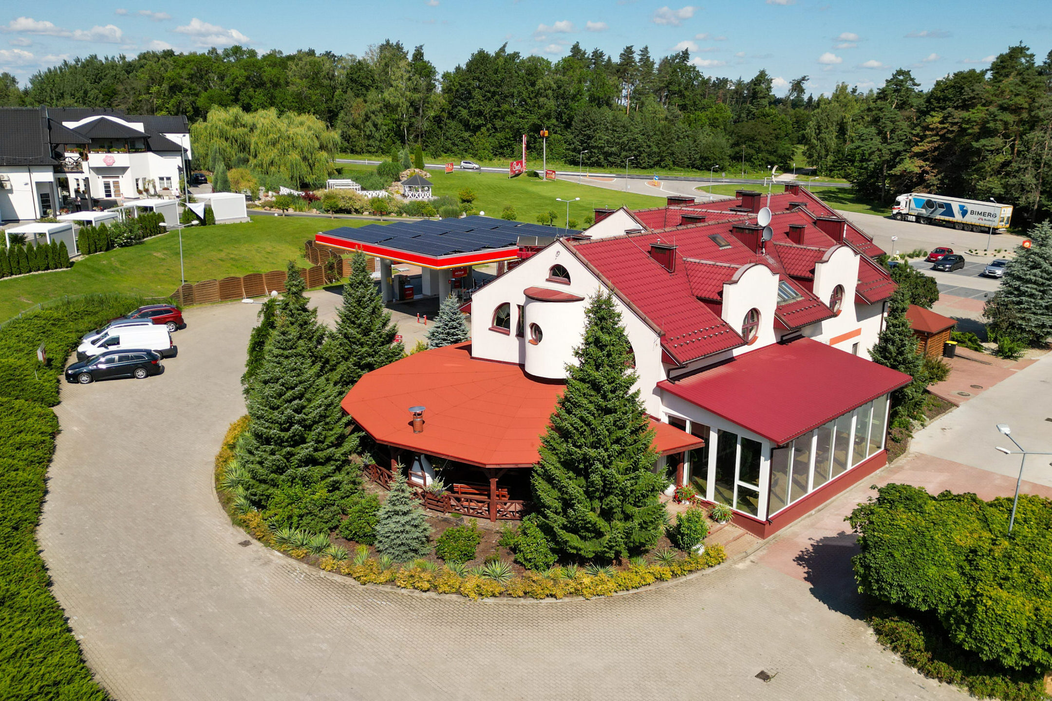 która znajduje się przy stacji paliw, dysponuje 50 miejscami dla gości.