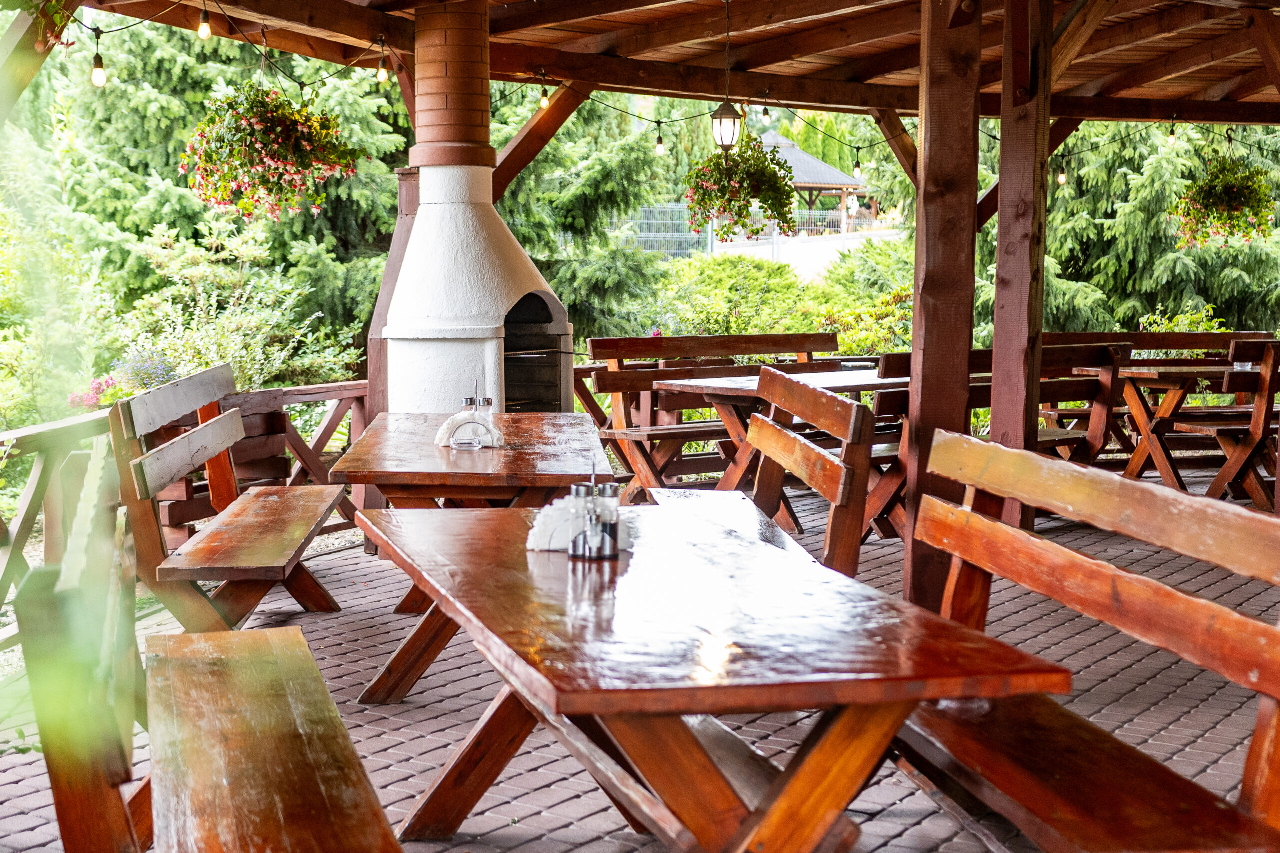 Obiekt posiada werandę, gdzie poza okresem zimowym można konsumować posiłki w ciszy i spokoju.